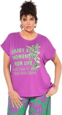 Damen große Größen Übergrößen Plus Size T-Shirt, Bedruckt, Oversized, Rundhals, Halbarm violett 46+ 838372830-46+