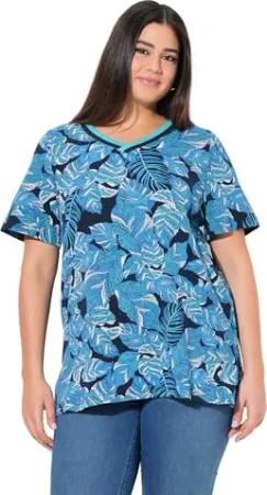 Damen große Größen Übergrößen Plus Size T-Shirt, Blätter, A-Linie, V-Ausschnitt, Flügel-Halbarm Marine 46+ 838486130-46+