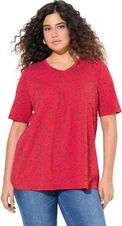 Damen große Größen Übergrößen Plus Size Shirt, doppellagige Vorderseite, Slim, Rundhals, Halbarm rot 58+ 810528535-58+
