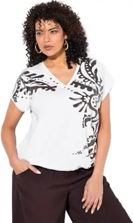 Damen große Größen Übergrößen Plus Size T-Shirt, Paisleymotiv, Oversized, V-Ausschnitt, Halbarm Offwhite 50+ 839131201-50+