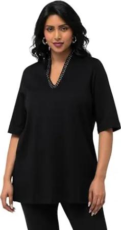 Damen große Größen Übergrößen Plus Size Shirt, Pima Cotton, A-Linie, V-Ausschnitt, 3/4-Arm schwarz 46+ 835755100-46+