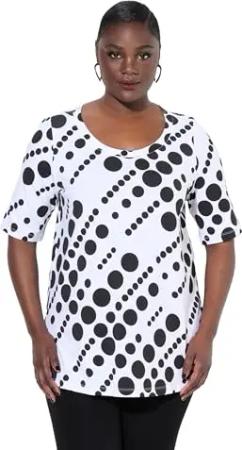 Damen große Größen Übergrößen Plus Size T-Shirt, Punkte, A-Linie, Rundhals, Halbarm, Pima Cotton schneeweiß 42+ 837486200-42+