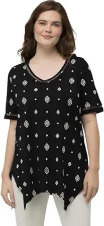 Damen große Größen Übergrößen Plus Size T-Shirt, Rhomben, V-Ausschnitt, Halbarm, Biobaumwolle schwarz 46+ 826847100-46+