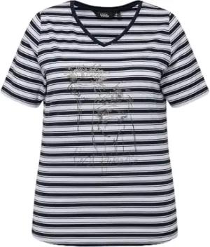 Damen große Größen Übergrößen Plus Size T-Shirt, Ringel, Metallic-Tiermotiv, V-Ausschnitt, Halbarm marine 46+ 831845130-46+