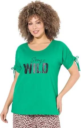 Damen große Größen Übergrößen Plus Size T-Shirt, Schriftzug, Oversized, Rundhals, Raffband smaragdgrün 50+ 838933459-50+