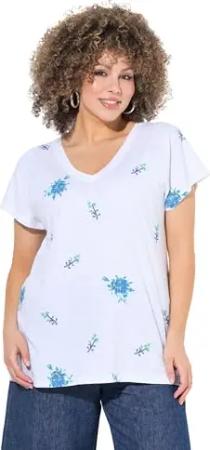 Damen große Größen Übergrößen Plus Size T-Shirt, Stickerei, Oversized, V-Ausschnitt, Halbarm schneeweiß 42+ 838554200-42+