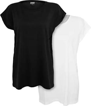 Damen Ladies Off Shoulder Rib Tee 2-Pack T-Shirt, Redwine+Black, S EU