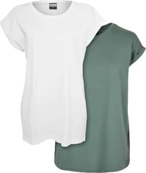 Damen Extended Shoulder Tee 2er Pack – Baumwoll T-Shirt mit überschnittenen Schultern, Loose Fit Basic für Alltag, Freizeit & Streetwear,White+paleleaf,L