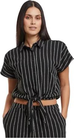 Ladies Cropped Wrapped Top Black, XS