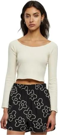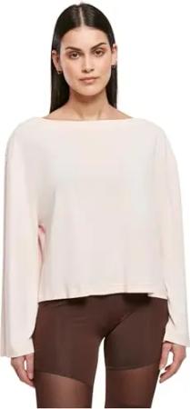 Damen Ladies Short Rib Wide V-Neck Longsleeve whitesand, XL