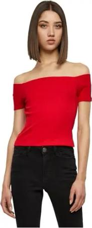 Damen Regular Fit T-Shirt Ladies Off Shoulder Rib Tee TB1500, Einfarbig, Gr. Medium (Herstellergröße: M), Rot (Fire Red 00697)