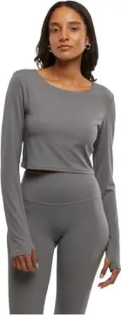 Damen Ladies Rib Cropped Top Top,, per pack Grau (grey 00111), Large (Herstellergröße: L)