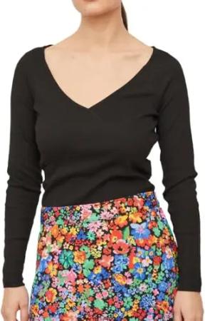Viesra V-Neck S/L Rib Knit Top