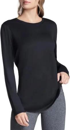 Damen Go Dri Swift Crew Langarm Tunika Tee, Dickes Schwarz, Groß