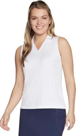 Damen Godri Swift Club ärmelloses Poloshirt, Weiss/opulenter Garten, Klein