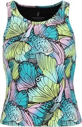 Damen T-Shirt Gowalk Butterfly Shadow Shelf Bra Tank, Türkis/Lila/Grün, Größe XS
