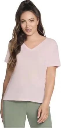 Damen T-Shirt Pima V-Neck Tee | Lockerer Schnitt | Leichtes Baumwoll-Spandex-Material | Helles Rosa