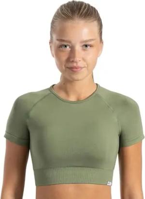 Crop Top Damen Elna, figurbetontes T-Shirt mit Rundhalsausschnitt, kurzen Ärmeln & Rippbund, Funktionsshirt glattes Material & bauchfrei, ideal für Alltag, Freizeit, Training & Studio-Outfits