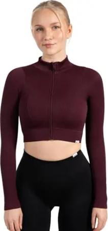 Damen Crop Trainingsjacke Slim Fit Zeya, figurbetonte Laufjacke, Fitness Oberteil mit hohem Kragen, Zip-Jacke mit Rippstruktur & Stretch, Sportjacke für Workout, Alltag, Yoga & Pilates