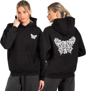 Hoodie Damen Nala, Oversize Fit Pullover mit großer Kapuze und Butterfly Print, bequemes Sweatshirt, weicher Flauschiger Stoff Kapuzenpullover, Idealer Sweater für Freizeit und Sport
