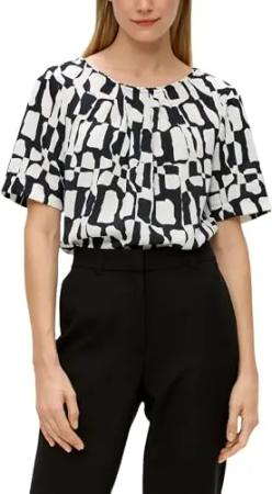 S.Oliver Schwarz LABEL Damen 2170663 Satinbluse Kurzarm, Grey/Black, 34