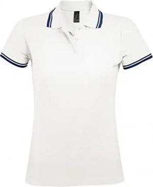 Damen Pasadena Pique Polo-Shirt, kurzärmlig (Large) (Weiß/Marineblau)