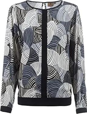 S'questo Bluse Damen Soquesto Langarm Rundhals Bluse mit Muster squesto, Gr.42, Schwarz