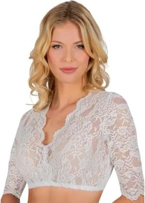 Dirndlbluse Alaya I Größe 32-48 I Damen Bluse in elegantem Design mit Spitze & V-Ausschnitt I Bequem & pflegeleicht I Perfekt für Trachten & Festlichkeiten