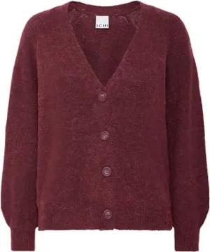 IHKAMARA Damen Strickjacke Cardigan mit Feinstrick Knöpfen leicht elastisch V-Auschnitt Regular fit, Größe:M, Farbe:Port Royale (191627)