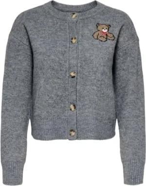 Damen Strickjacke gestrickter Cardigan mit Teddy-Motiv ONLTeddy 15357743 Medium Grey Melange Teddy S