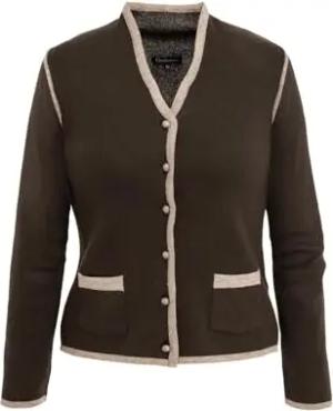 OS Trachten Damen Strickjacke Trachtenjacke Cardigan mit Rundhalsausschnitt Igaza, Größe:44, Farbe:Dunkelbraun