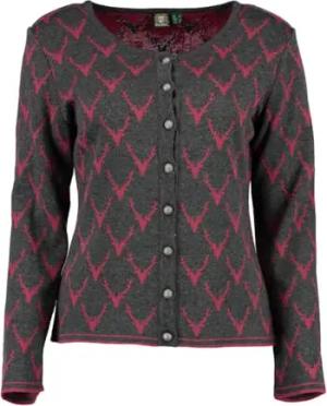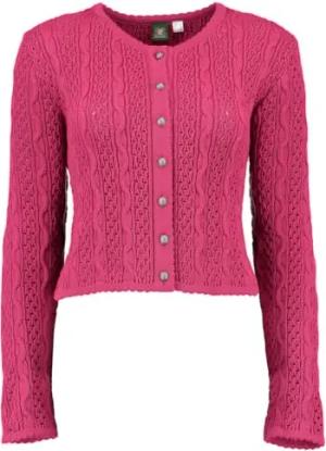 OS Trachten Damen Strickjacke Trachtenjacke Cardigan mit Rundhalsausschnitt Igaza, Größe:34, Farbe:Himbeere