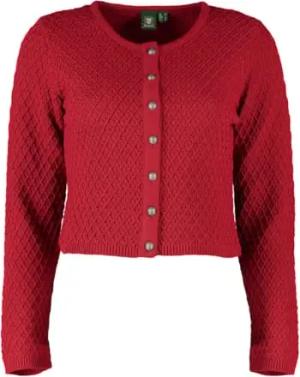 OS Trachten Strickjacke mit Rundhalsausschnitt Borida, Größe:42, Farbe:dunkelrot