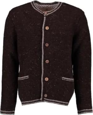 OS Trachten Herren Strickjacke Langarm Trachtenjacke Cardigan Wolljacke mit Rundhalsausschnitt Fudei, Größe:48, Farbe:mittelbraun