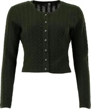 OS Trachten Damen Strickjacke Trachtenjacke Cardigan mit Rundhalsausschnitt Quivun, Größe:32, Farbe:dunkelgrün