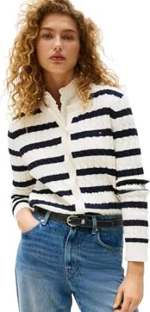 Damen Strickjacke Cardigan Co Cable Mid Slim Fit, Mehrfarbig (Ivory Silk/Dark Night Navy Stp), XS