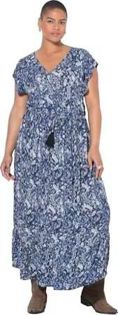 Damen große Größen Übergrößen Plus Size Maxikleid, Bindeband, Paisleyprint dunkel blau 50+ 842664741-50+