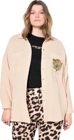 Damen große Größen Übergrößen Plus Size Musselin Bluse, Oversized, Tasche mit Leo-Patch beige 54+ 839023300-54+