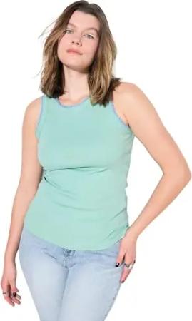 Damen große Größen Übergrößen Plus Size Ripptop, Slim Basic Shape, Color-Einfassungen Aloe Vera 50+ 839897425-50+