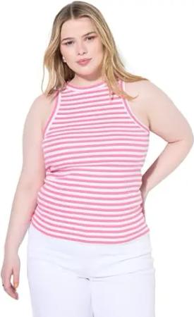 Damen große Größen Übergrößen Plus Size Tanktop, Slim Shape, Rippjersey, Ringel pink 46+ 841258806-46+
