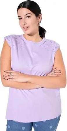 Damen große Größen Übergrößen Plus Size Top, Oversize Shape, Schulter mit Glitzersteinchen Flieder 42+ 837886815-42+