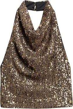 Damen Pailletten-Top mit Wasserfallausschnitt Braun Gold Pailletten 44