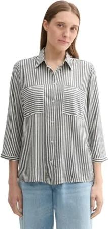 Damen Basic Bluse mit Streifen, 34913 - Blue White Thin Stripe, XL