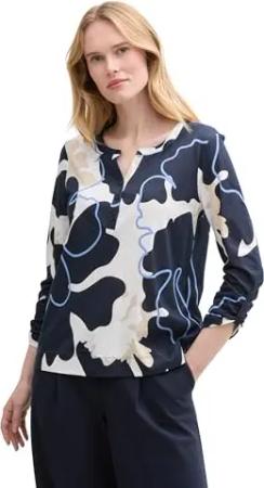 Henley Langarmshirt mit Muster, Navy Paper Cut Design, S
