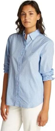 Damen Hemd Pinstripe Poplin Regular Fit, Mehrfarbig (Sugarplum Blue/Stripe), XS