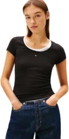 Damen Tjw Slim Essential Logo2 Tee EXT Dw0dw20913 S/S T-Shirt, Black (Black), XXS EU