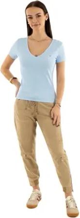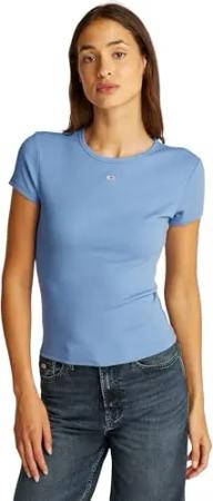 Damen T-Shirt Kurzarm Essential Rib Slim Fit, Blau (Blue Moment), XXS