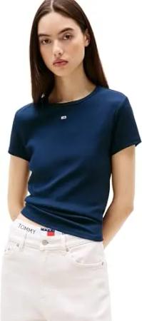 Damen T-Shirt Kurzarm Slim Essential Rib Rundhalsausschnitt, Blau (Dark Night Navy), XXS