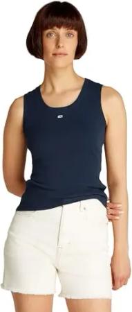 Damen Tank Top Essential Rib Slim Fit, Blau (Dark Night Navy), XS