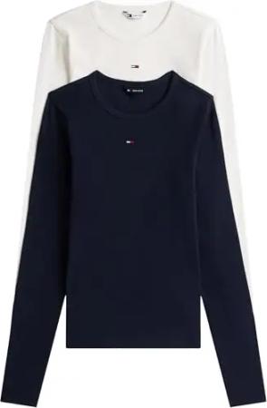 Damen Tjw 2pack Slim Essential Rib Dw0dw17716 T-Shirt L/S, Multi (Ecru/Dark Night Navy), XL EU